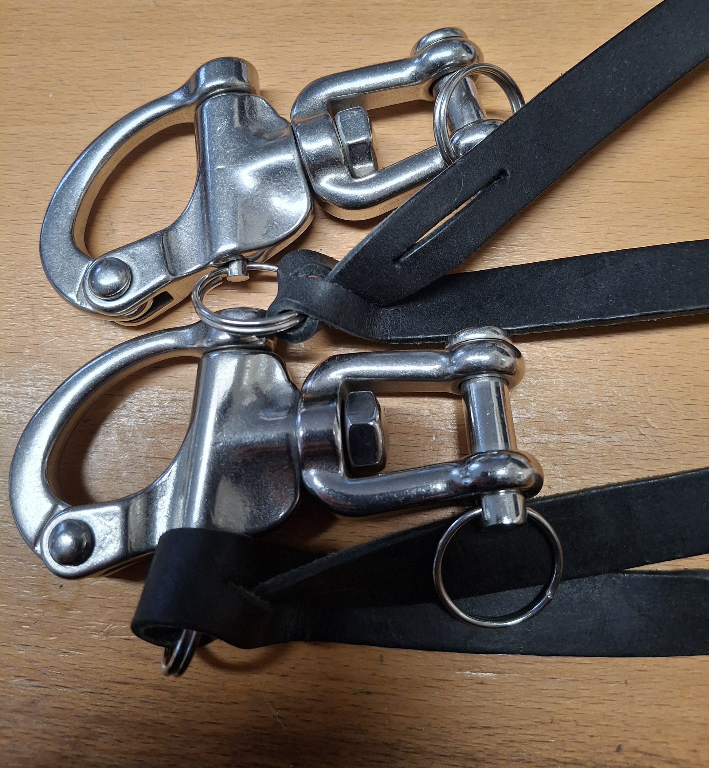 Stainless steel marine grade QR Shackles, includes Leather pull tab
