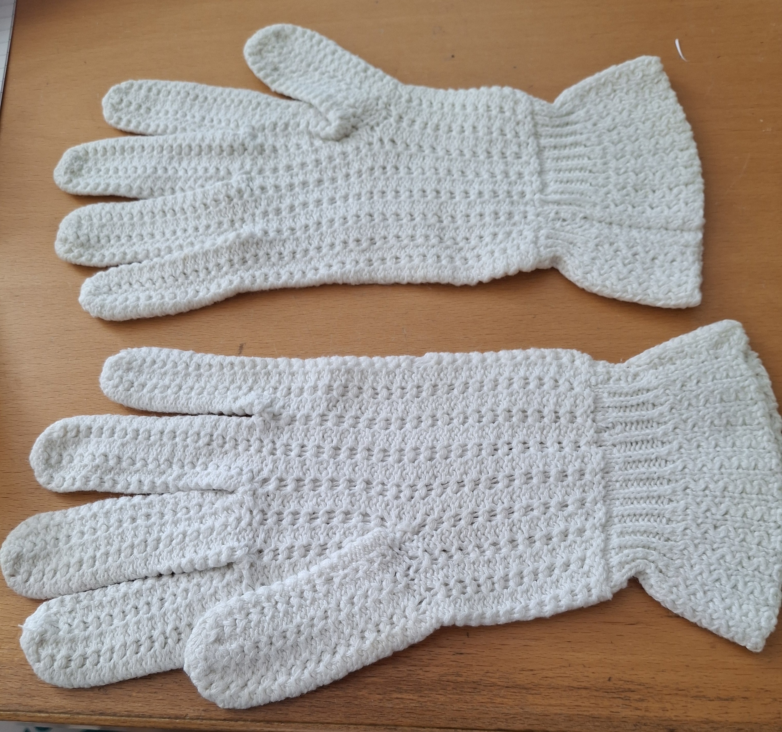 Vintage hand made crochet knitted whit cotton gloves, suitable for your Private Driving Turnout.