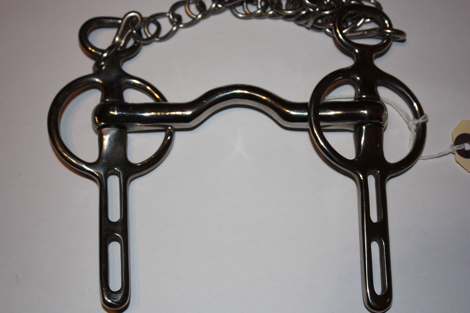 Popular Liverpool bit with a low port to stop the horse/ pony getting his tongue over the bit. Stainless Steel bit with curb chain.