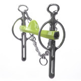 Liverpool driving bit in METALAB stainless steel with two slots, offering variable rein positions to adjust the leverage effect. The lower the reins are placed in the slots, the greater the leverage and severity of the bit.