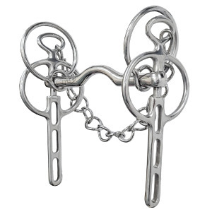 Swales Liverpool bit (Low Port) features 2 extra rings. The cheeks are attached to these rings, diminishing the pressure on the poll. Leverage adjustment can be achieved through the curb chain.
