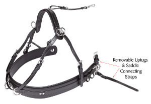 Same design as the Classic Single Breastplate, plus padded wither strap with swivel rein rings & retainer strap fitted. 32mm trace buckles with removable uptugs & saddle connecting straps.