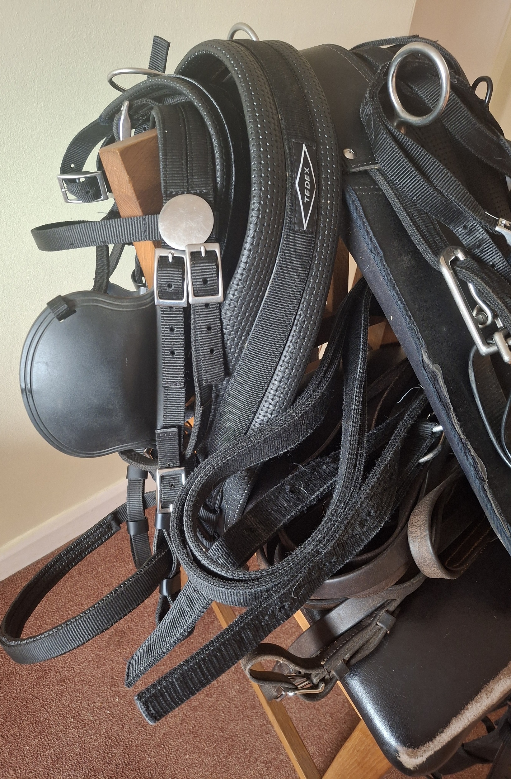 Tedex Cob Harness, well used (see wear on edge of saddle, but plenty of life left in it). Rest of harness is in very good clean condition. Designed to fit approx 14.2hh