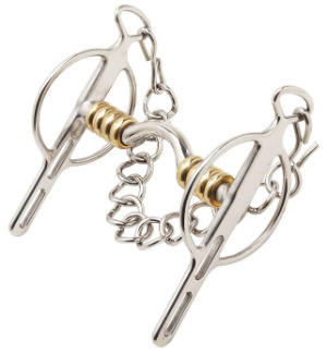 Liverpool bits are the most commonly used of the driving harness bits. The fixed cheek of this model prevents pinching of the lips.